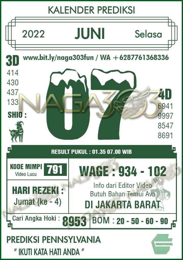 Prediksi Pennsylvania Pools Selasa 07 Juni 2022 | Web Toto Naga303