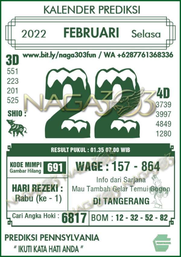 Prediksi Pennsylvania Pools Selasa 22 Februari 2022 | Web Toto Naga303