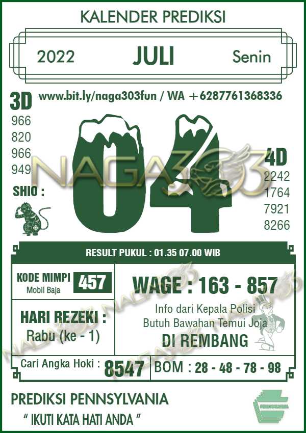 Prediksi Pennsylvania Pools Senin 04 Juli 2022