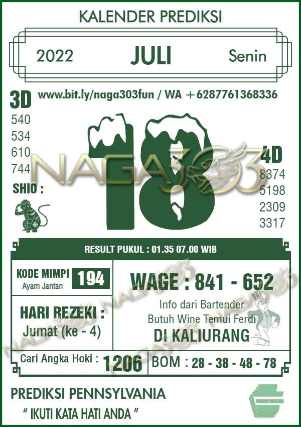 Prediksi Pennsylvania Pools Senin 18 Juli 2022