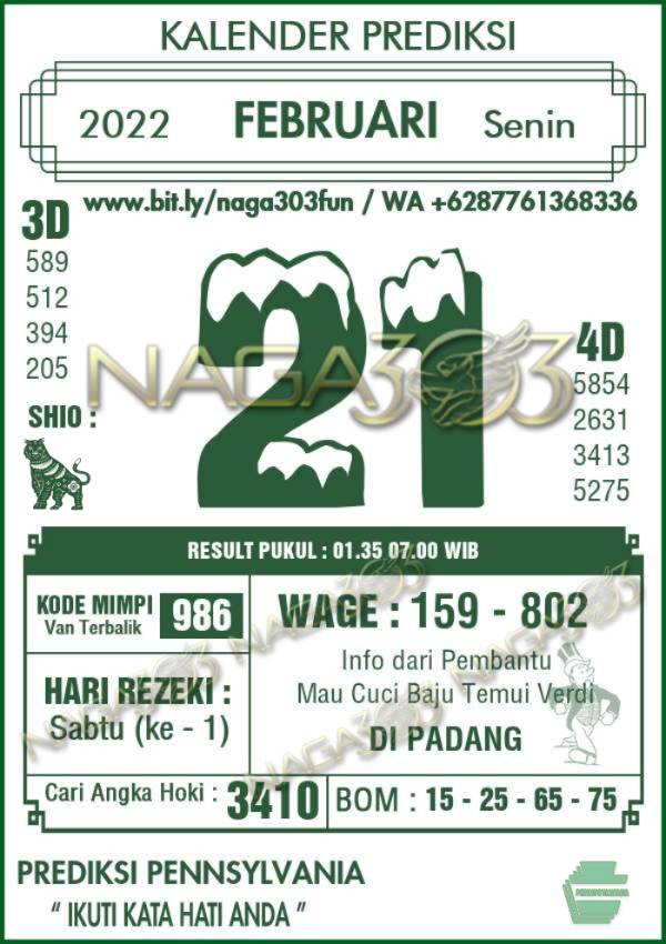 Prediksi Pennsylvania Pools Senin 21 Februari 2022 | Web Toto Naga303