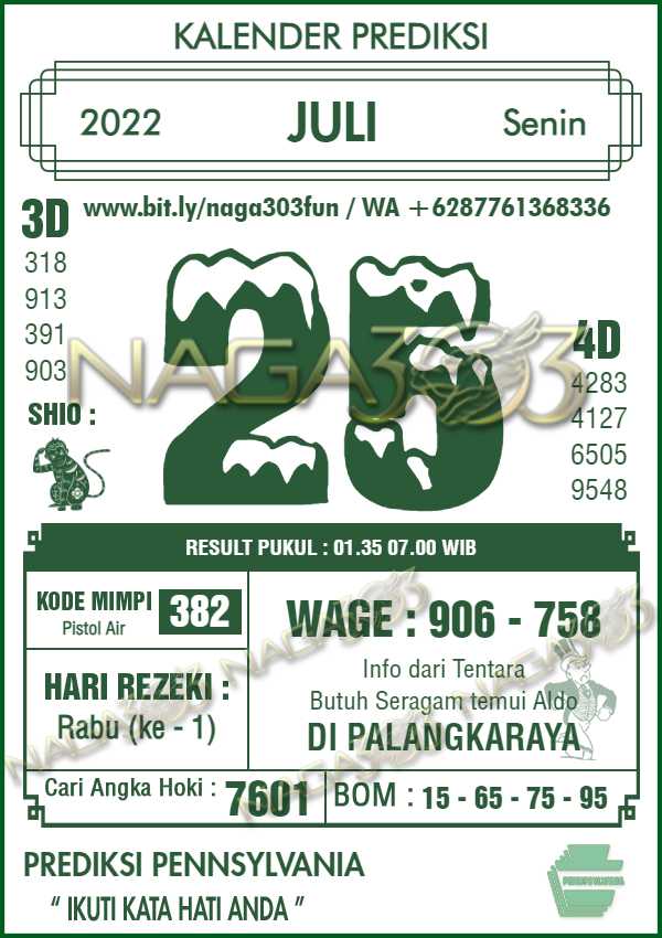 Prediksi Pennsylvania Pools Senin 25 Juli 2022