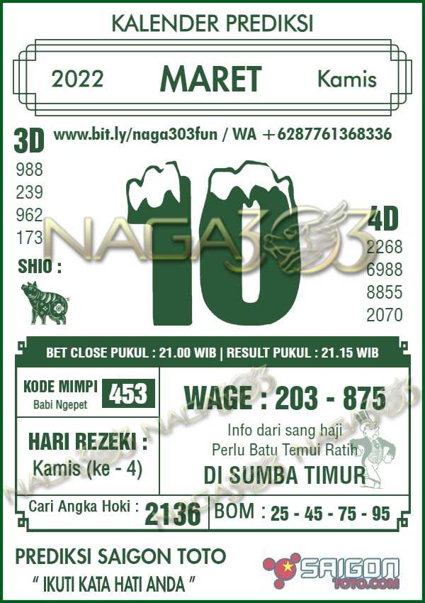 Prediksi Saigon Toto Kamis 10 Maret 2022