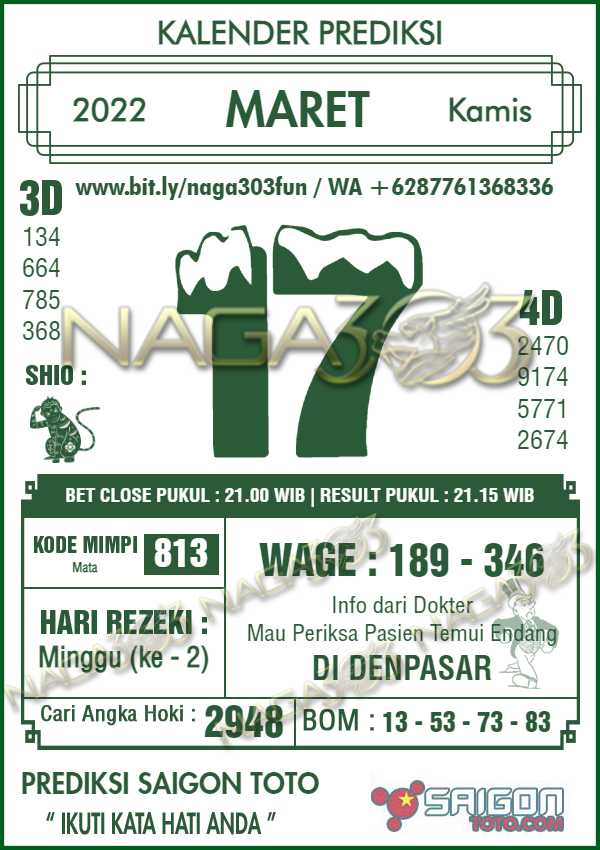 Prediksi Saigon Toto Kamis 17 Maret 2022 | Web Toto Naga303