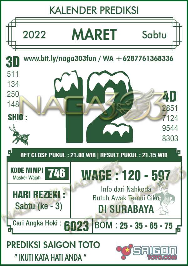 Prediksi Saigon Toto Sabtu 12 Maret 2022