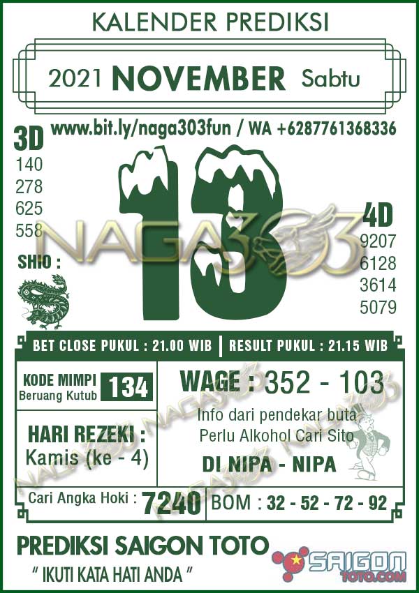 Prediksi Saigon Toto Sabtu 13 November 2021