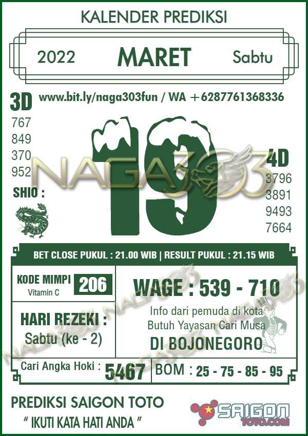 Prediksi Saigon Toto Sabtu 19 Maret 2022