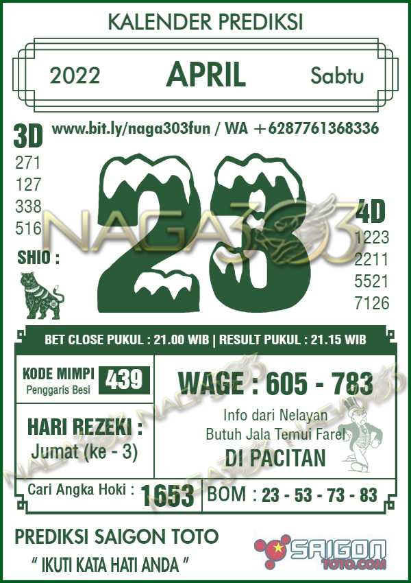 Prediksi Saigon Toto Sabtu 23 April 2022 | Web Toto Naga303