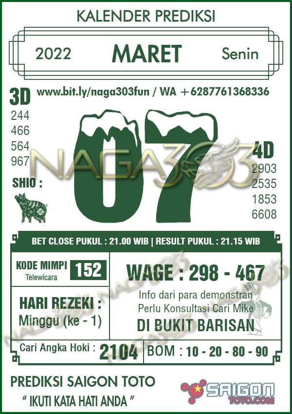 Prediksi Saigon Toto Senin 07 Maret 2022 | Web Toto Naga303