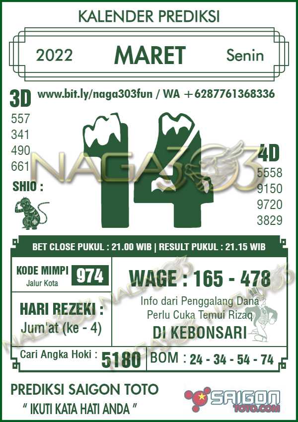 Prediksi Saigon Toto Senin 14 Maret 2022