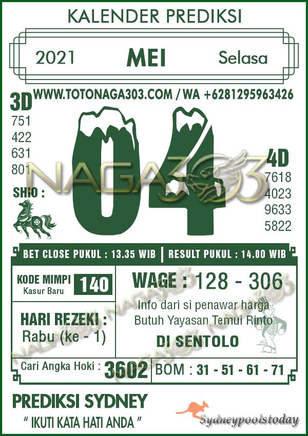Prediksi Sdyney Pools Selasa 04 Mei 2021 | Web Toto Naga303