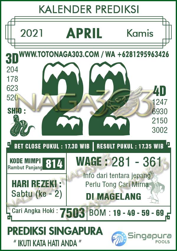 Prediksi Singapore Pools Kamis 22 April 2021