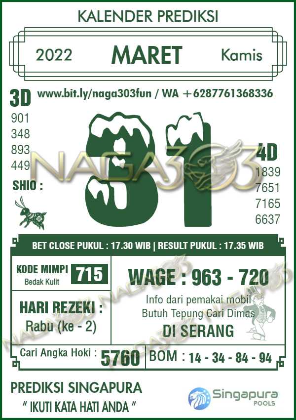Prediksi Singapore Pools Kamis 31 Maret 2022 | Web Toto Naga303