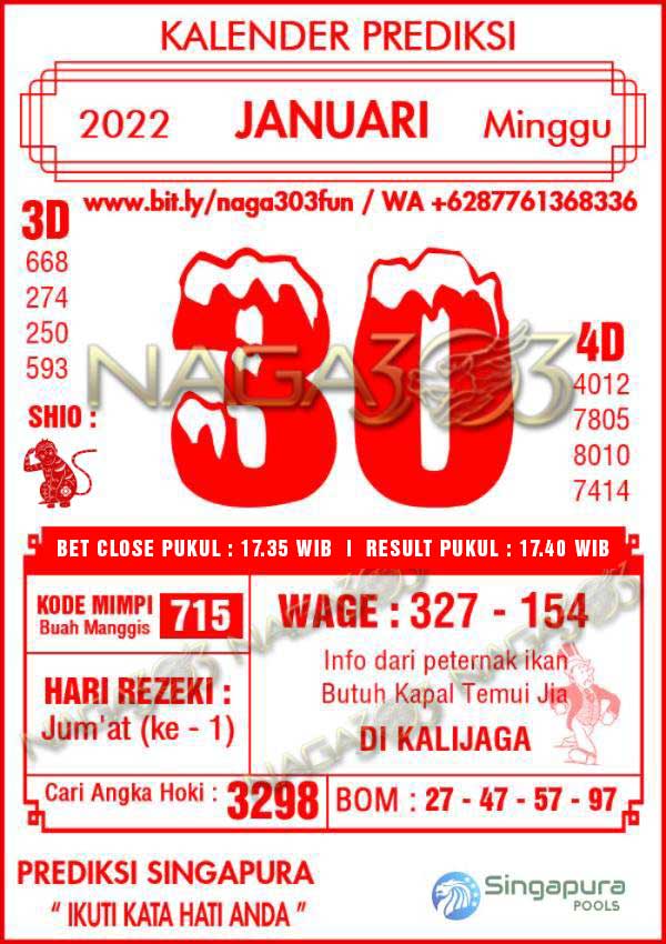 Prediksi Singapore Pools Minggu 30 Januari 2022