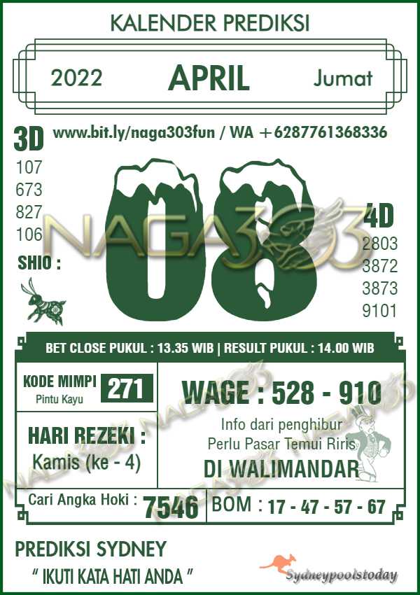 Prediksi Sydney Pools Jumat 08 April 2022 | Web Toto Naga303