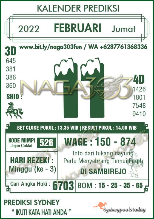 Prediksi Sydney Pools Jumat 11 Februari 2022 | Web Toto Naga303