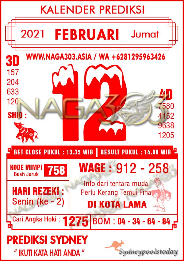 Prediksi Sydney Pools Jumat 12 Februari 2021 | Web Toto Naga303