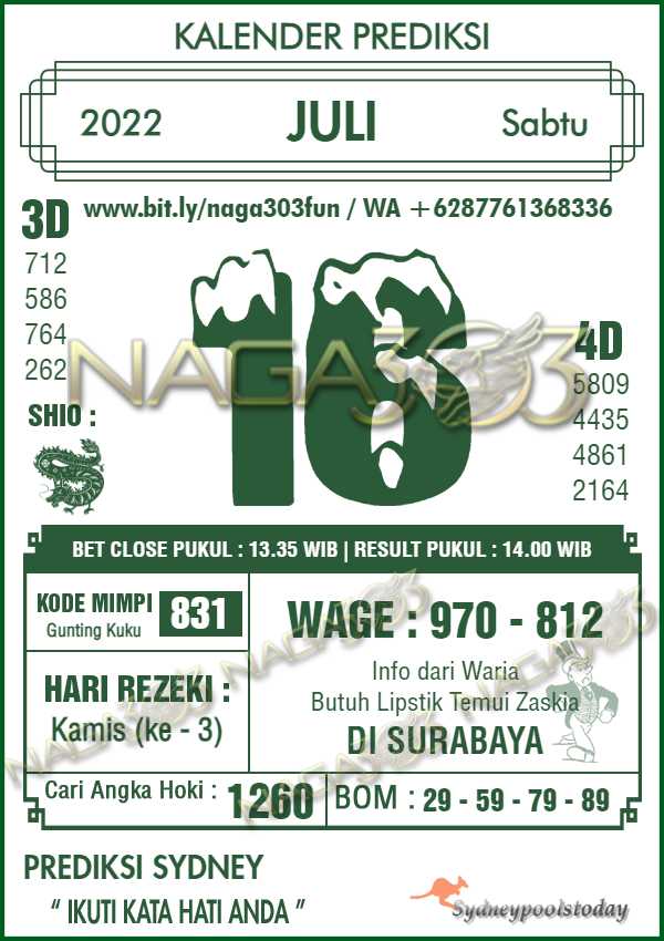 Prediksi Sydney Pools Jumat 15 Juli 2022 | Web Toto Naga303