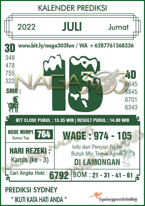 Prediksi Sydney Pools Jumat 15 Juli 2022 | Web Toto Naga303