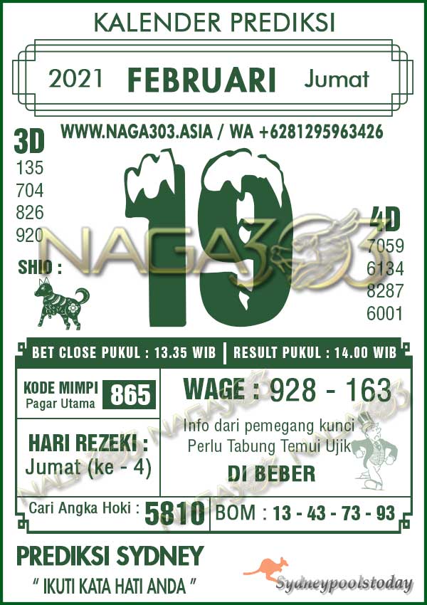 Prediksi Sydney Pools Jumat 19 Februari 2021