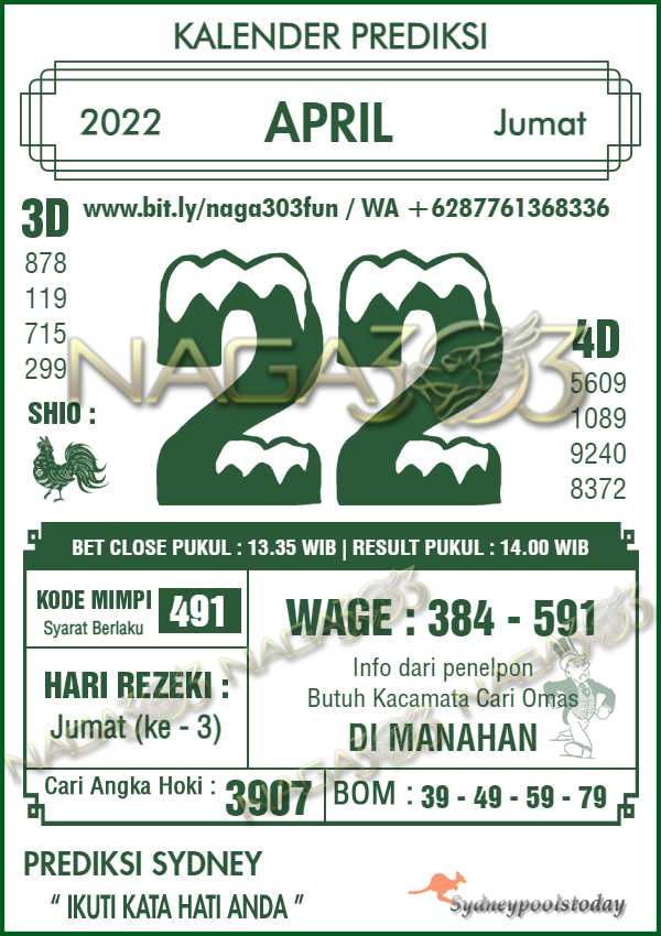 Prediksi Sydney Pools Jumat 22 April 2022 | Web Toto Naga303