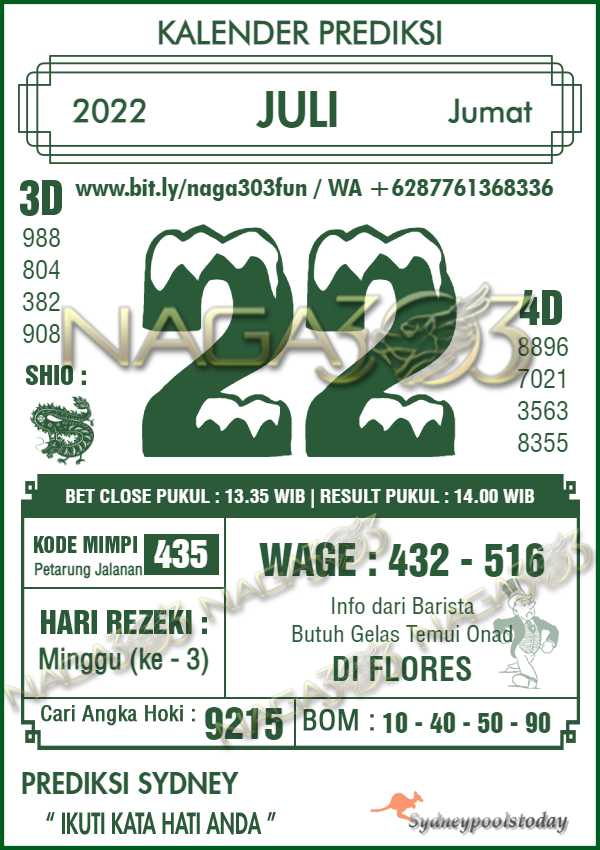 Prediksi Sydney Pools Jumat 22 Juli 2022 | Web Toto Naga303