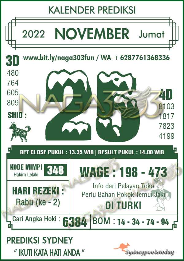 Prediksi Sydney Pools Jumat 25 November 2022 | Web Toto Naga303