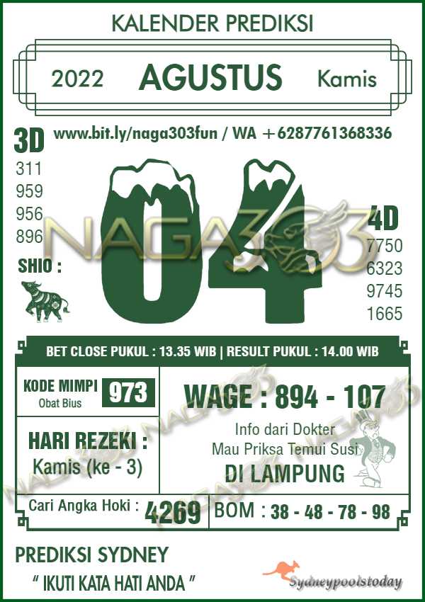 Prediksi Sydney Pools Kamis 04 Agustus 2022