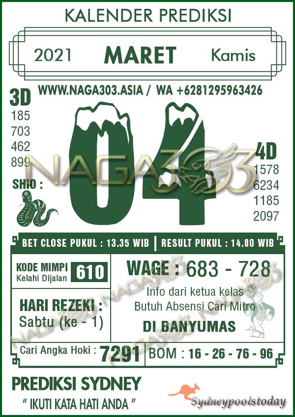 Prediksi Sydney Pools Kamis 04 Maret 2021