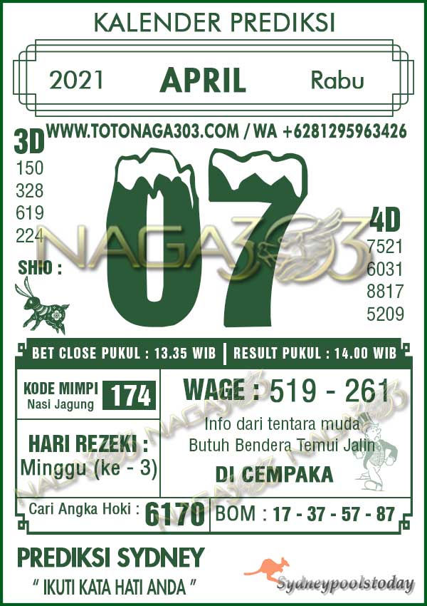 Prediksi Sydney Pools Kamis 08 April 2021 | Web Toto Naga303