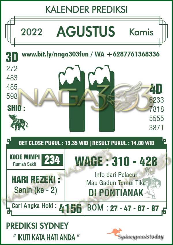 Prediksi Sydney Pools Kamis 11 Agustus 2022 | Web Toto Naga303