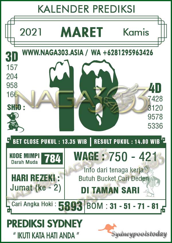 Prediksi Sydney Pools Kamis 18 Maret 2021 | Web Toto Naga303