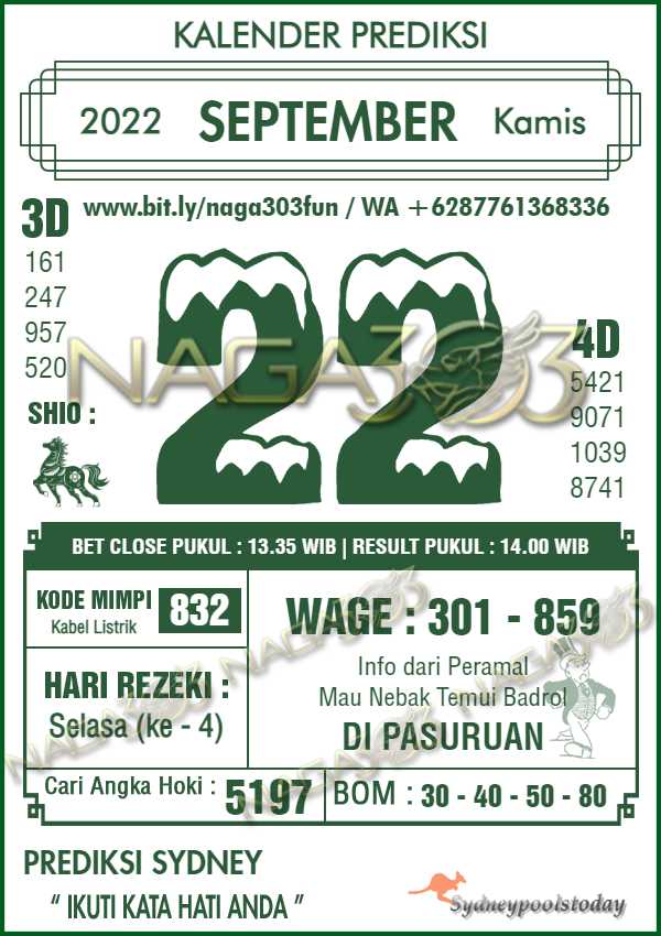 Prediksi Sydney Pools Kamis 22 September 2022 | Web Toto Naga303