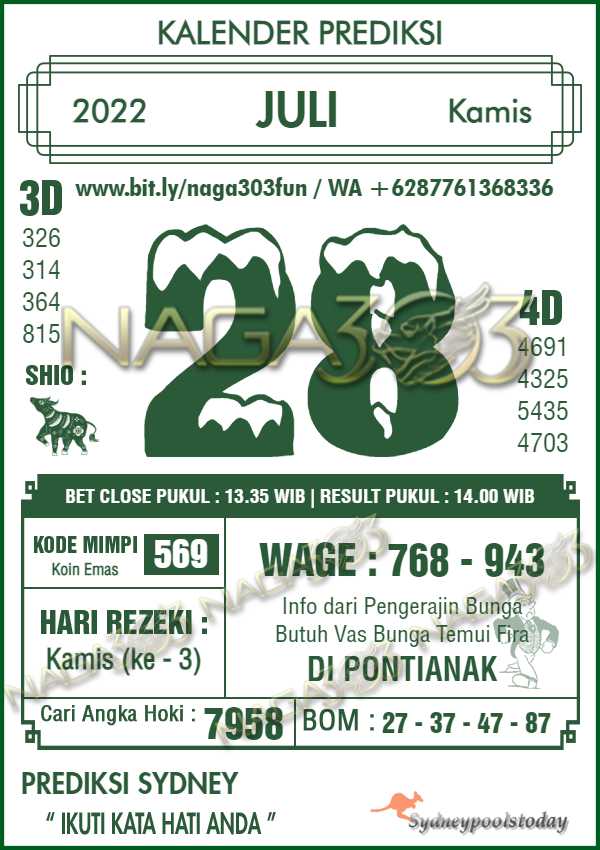 Prediksi Sydney Pools Kamis 28 Juli 2022