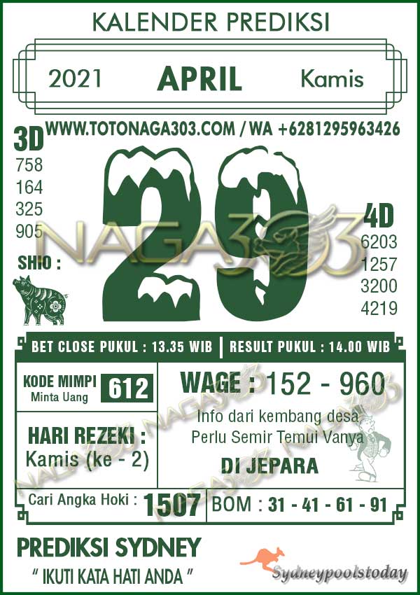 Prediksi Sydney Pools Kamis 29 April 2021 | Web Toto Naga303