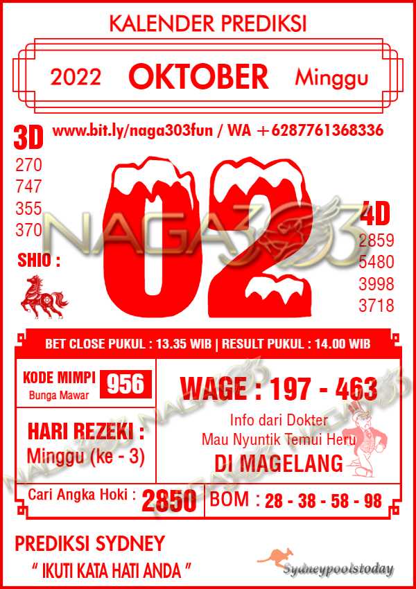 Prediksi Sydney Pools Minggu 02 Oktober 2022 | Web Toto Naga303