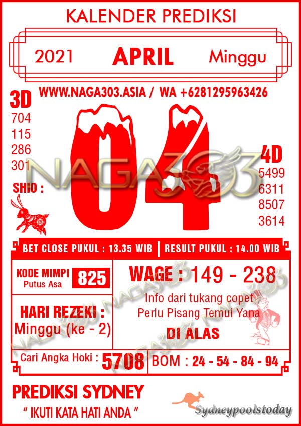 Prediksi Sydney Pools Minggu 04 April 2021 | Web Toto Naga303