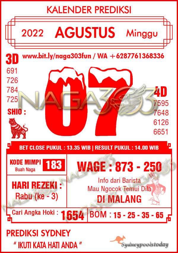 Prediksi Sydney Pools Minggu 07 Agustus 2022 | Web Toto Naga303