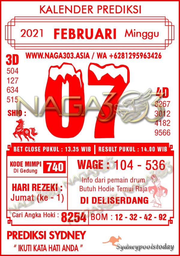 Prediksi Sydney Pools Minggu 07 Februari 2021 | Web Toto Naga303