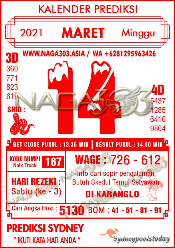 Prediksi Sydney Pools Minggu 14 Maret 2021 | Web Toto Naga303