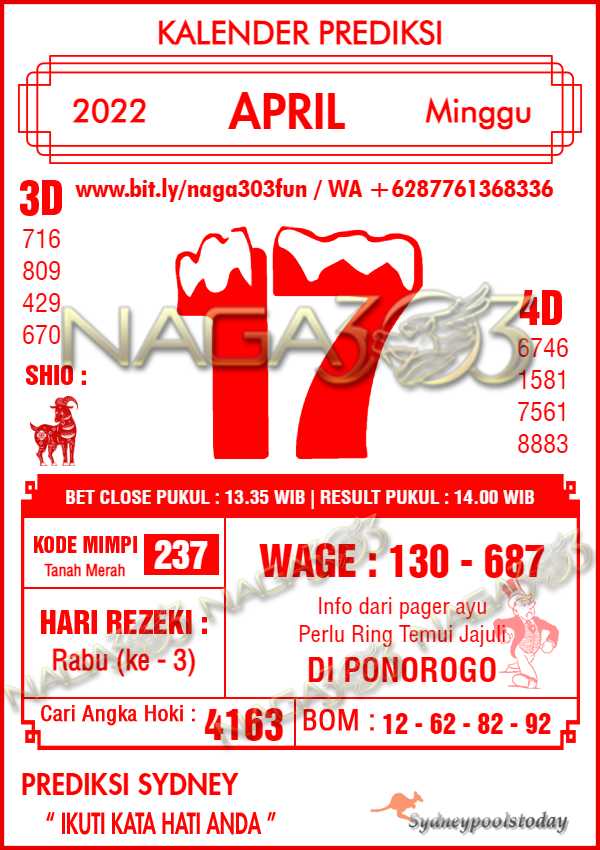 untuk informasi mengenai Prediksi Togel Sydney, ini lah yang tadi kami bahas semoga bermanfaat prediksinya dan semoga anda beruntung. Salam Hokky…