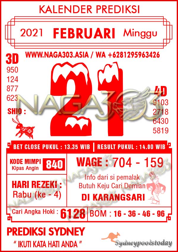 Prediksi Sydney Pools Minggu 21 Februari 2021