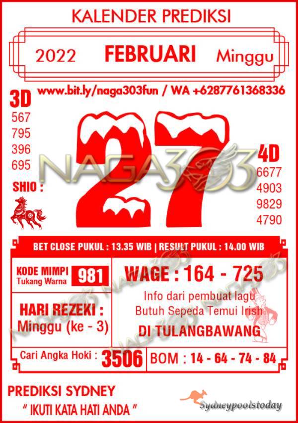 Prediksi Sydney Pools Minggu 27 Februari 2022 | Web Toto Naga303