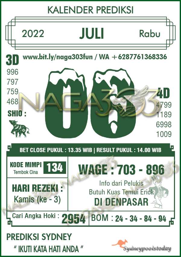 Prediksi Sydney Pools Rabu 06 Juli 2022