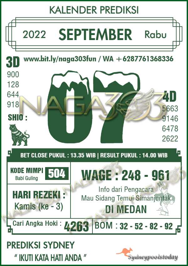 Prediksi Sydney Pools Rabu 07 September 2022 | Web Toto Naga303