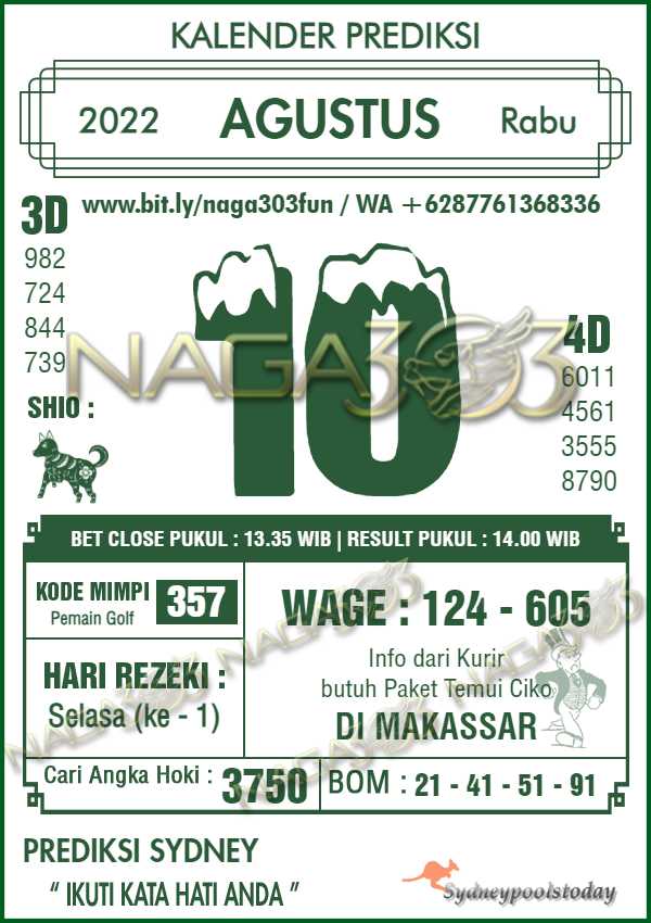 Prediksi Sydney Pools Rabu 10 Agustus 2022 | Web Toto Naga303