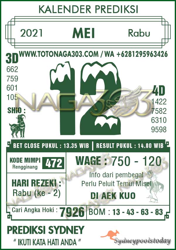 Prediksi Sydney Pools Rabu 12 Mei 2021 | Web Toto Naga303