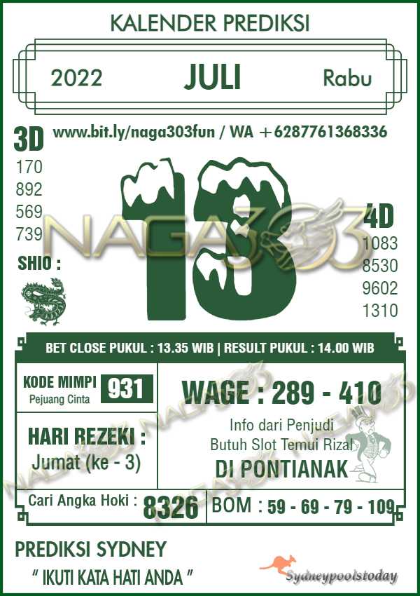 Prediksi Sydney Pools Rabu 13 Juli 2022 | Web Toto Naga303