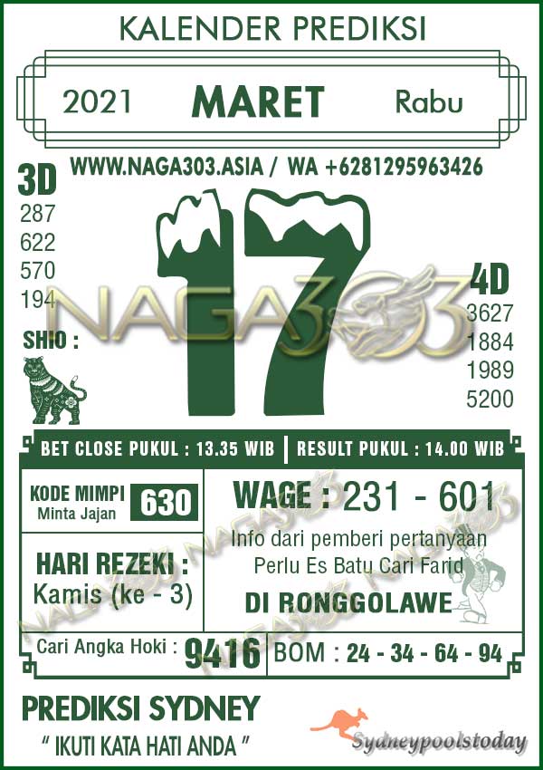 Prediksi Sydney Pools Rabu 17 Maret 2021 | Web Toto Naga303