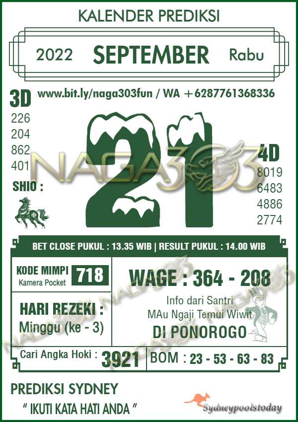 Prediksi Sydney Pools Rabu 21 September 2022 | Web Toto Naga303